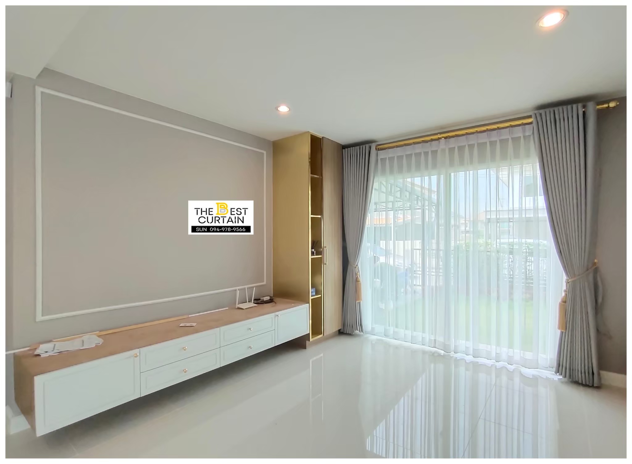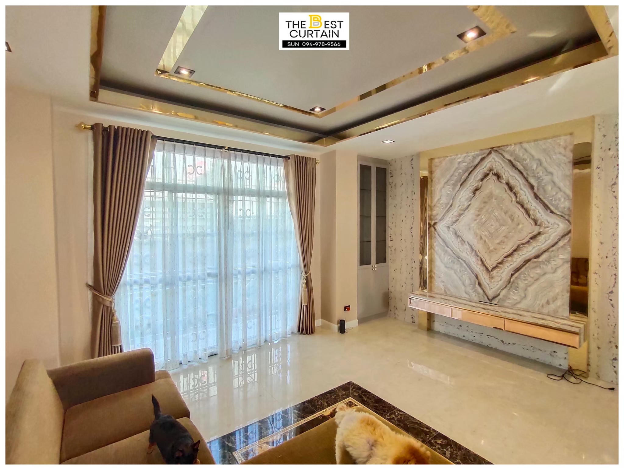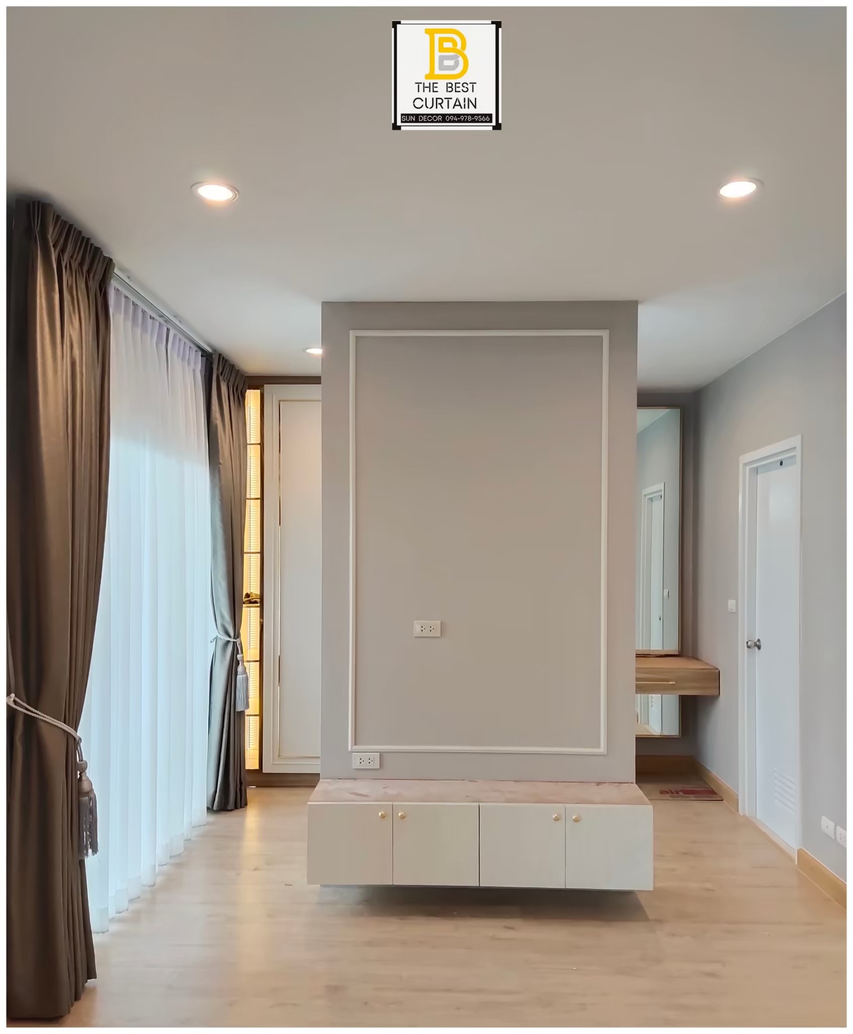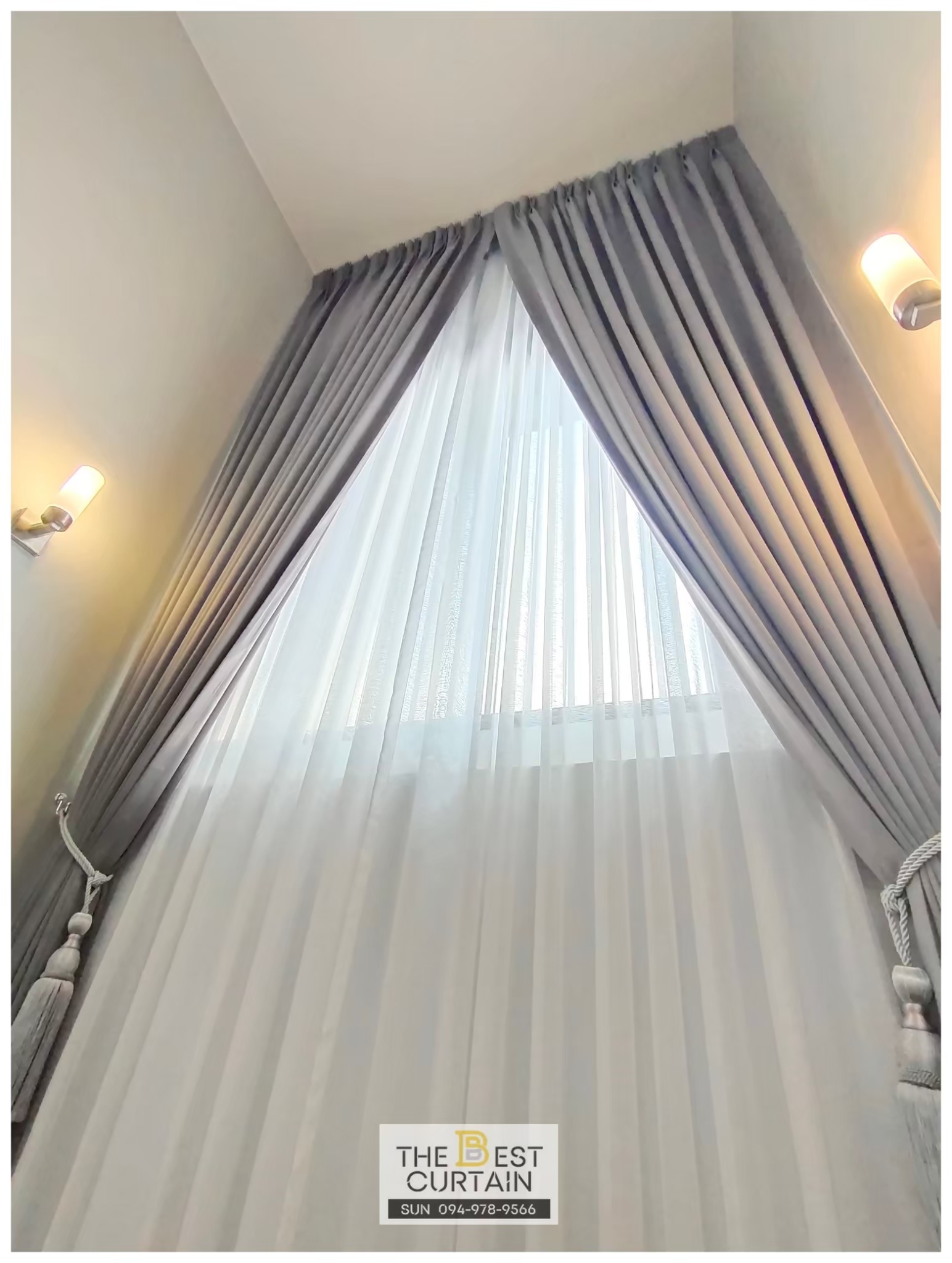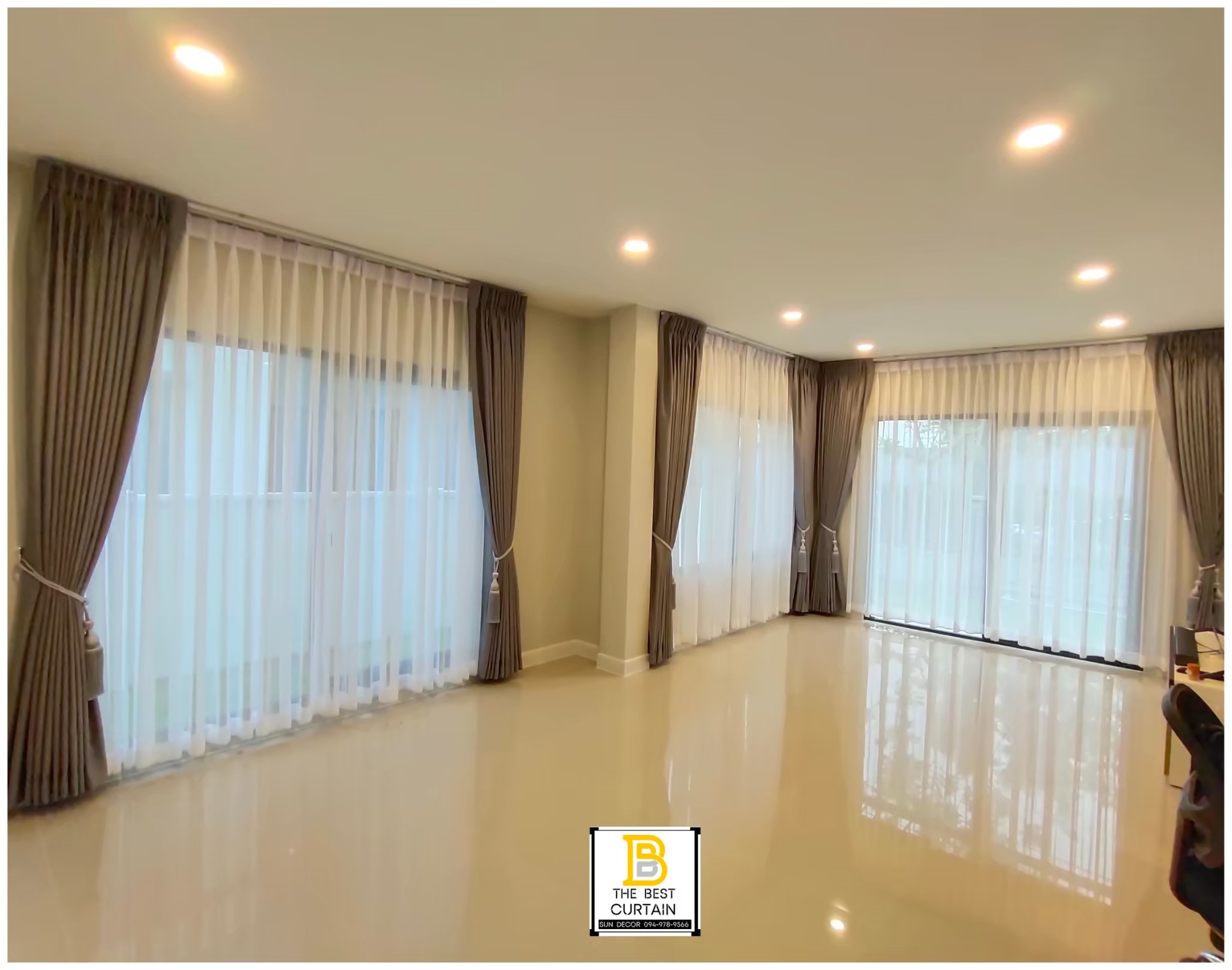 ม่านโปร่งและม่านทึบ หากบานหน้าต่างหรือประตูยิ่งเป็นบานใหญ่และสูง แล้วเลือกติดม่านจีบจะยิ่งทำให้ห้องนั้นดูสวยหรู อลังการ หรือหากต้องการให้ห้องนั้นมีอารมณ์ร่วมสมัย เรียบหรูและดูเรียบร้อย ให้ทำรางม่านซ่อนบนฝ้าเพดานได้